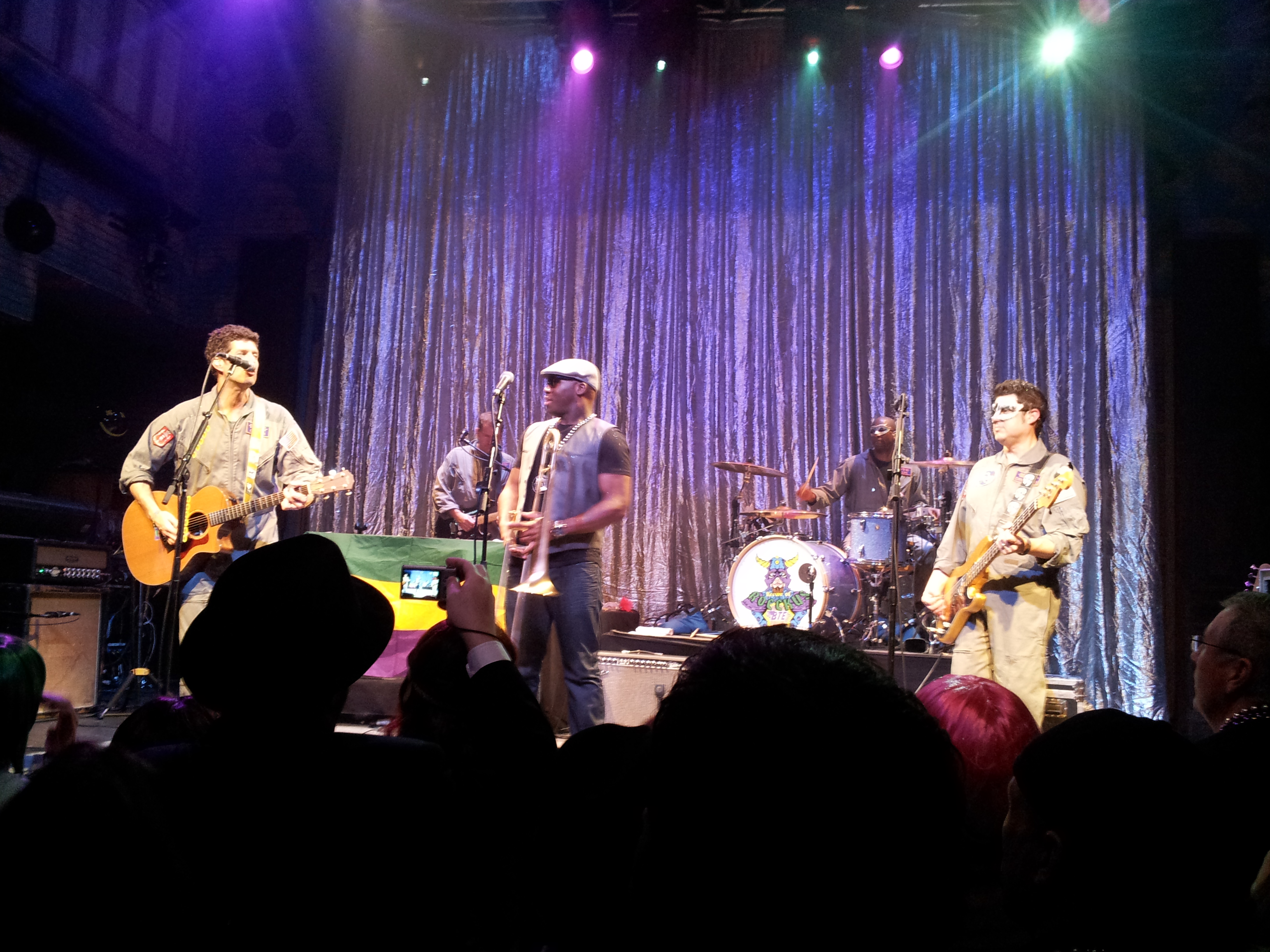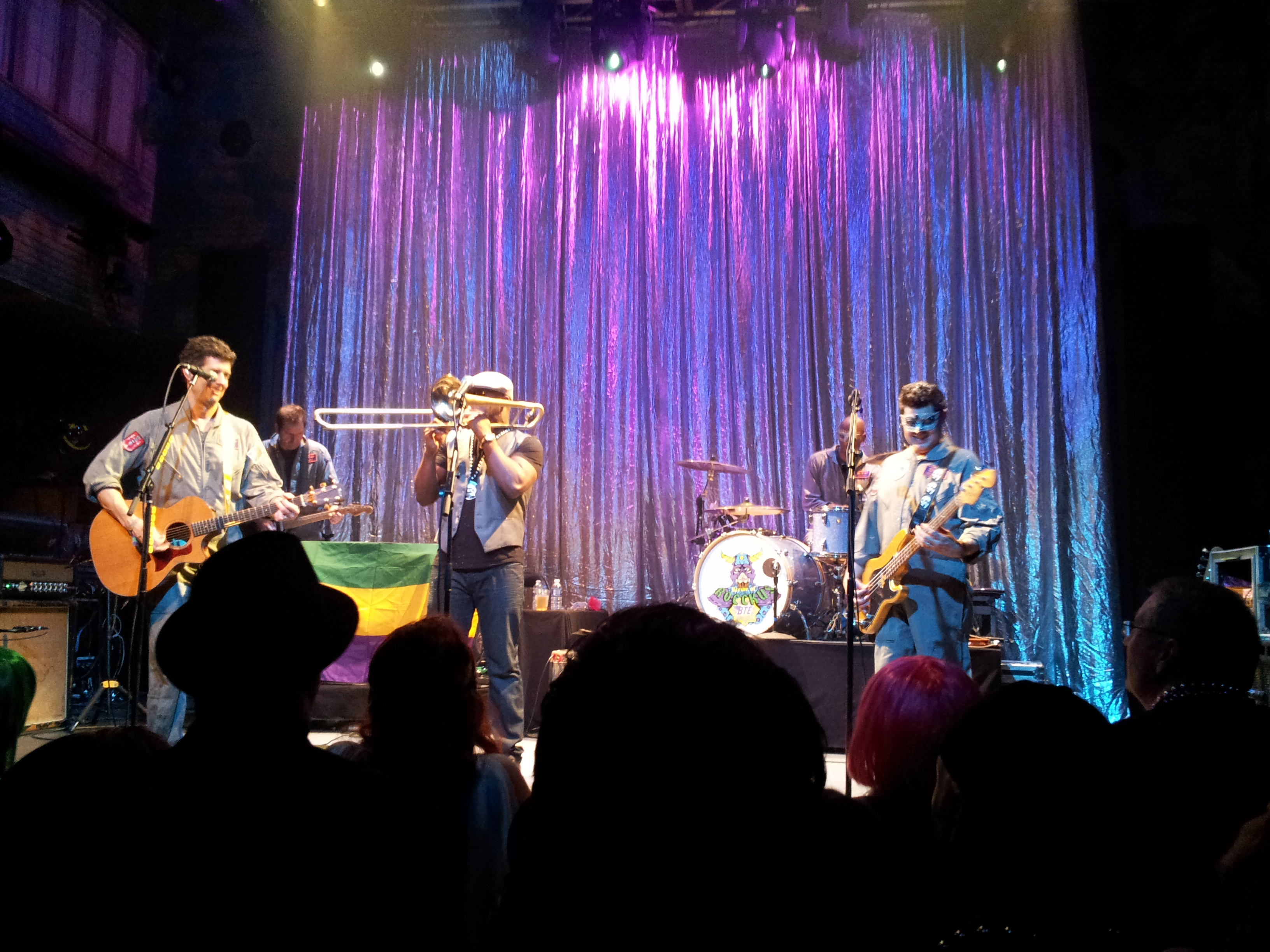 Opener Big Sam with his Funky Nation not only brought the funk, but a similar hard-driving, visceral energy. You’ll rarely hear trombones played over rock and funk with such a hard edge, and so impressed was KoR that, as mentioned above, a good portion of the group followed them to Blue Nile. After this strong opener, BTE was in top form, with Jerome propelling them forward full force. There were no new antics–Michael Jerome telling the story of his partying by playing only the cowbells has become a common gag, though still fun–but the songs were well-chosen and well-played, leaning heavily on the strong Closer album. The only hitch in the night was a drunken dolt who pushed his way up front and not only was annoying but rude to one of the women in our gang. The men swarmed, ready to self police (I was running through jiu jitsu chokes in my head) and he soon got the message and left. By the time the band invited all its lovely female fans onto stage for sultry favorite, “Juicy,” (or more appropriately “J-j-j-j-j-j-j-j-j-juicy!”), the crowd was at fever pitch. It was a satisfying end to a satisfying three day ride with Krewe of Rocckus. If only it would have ended there….