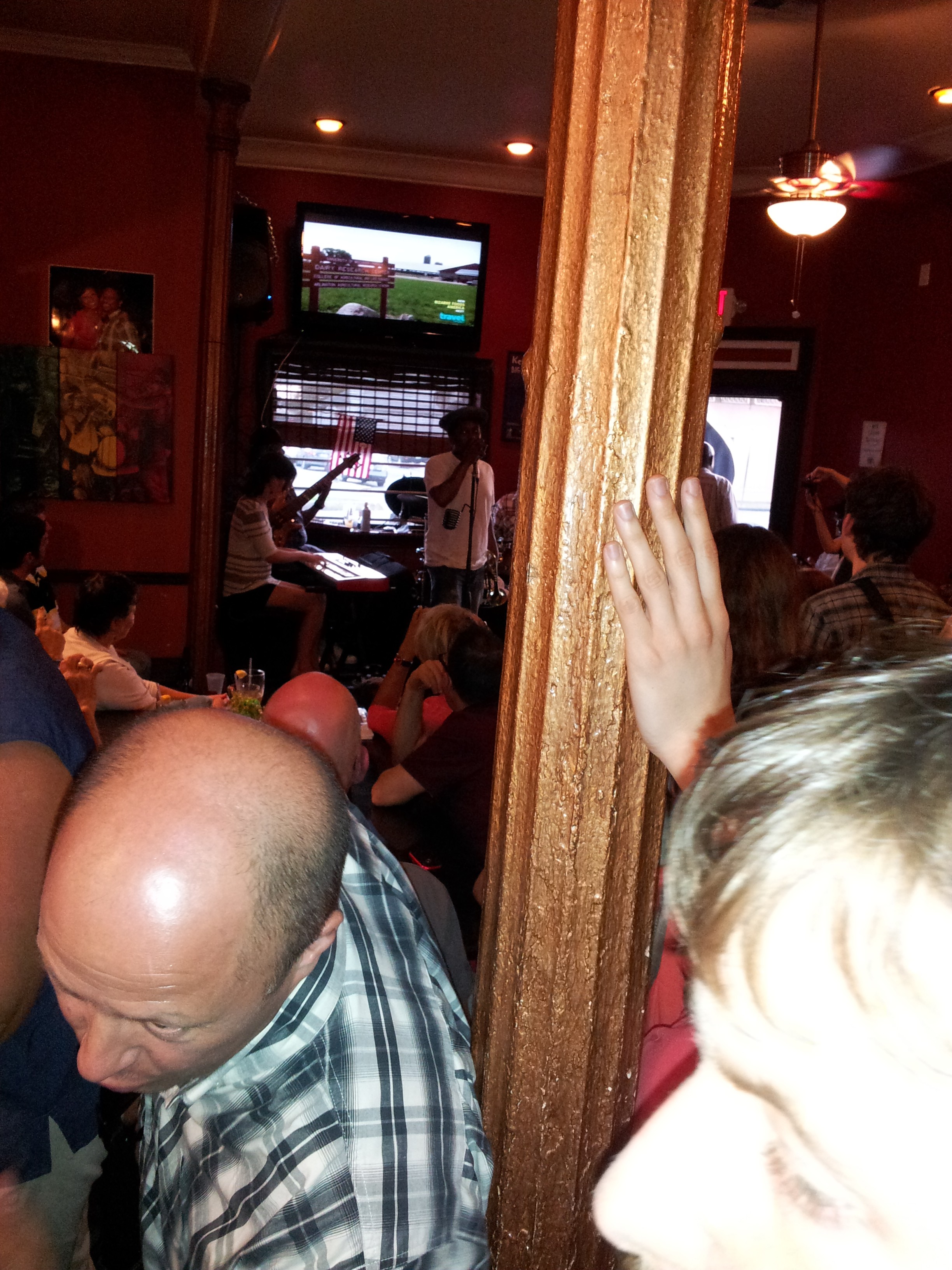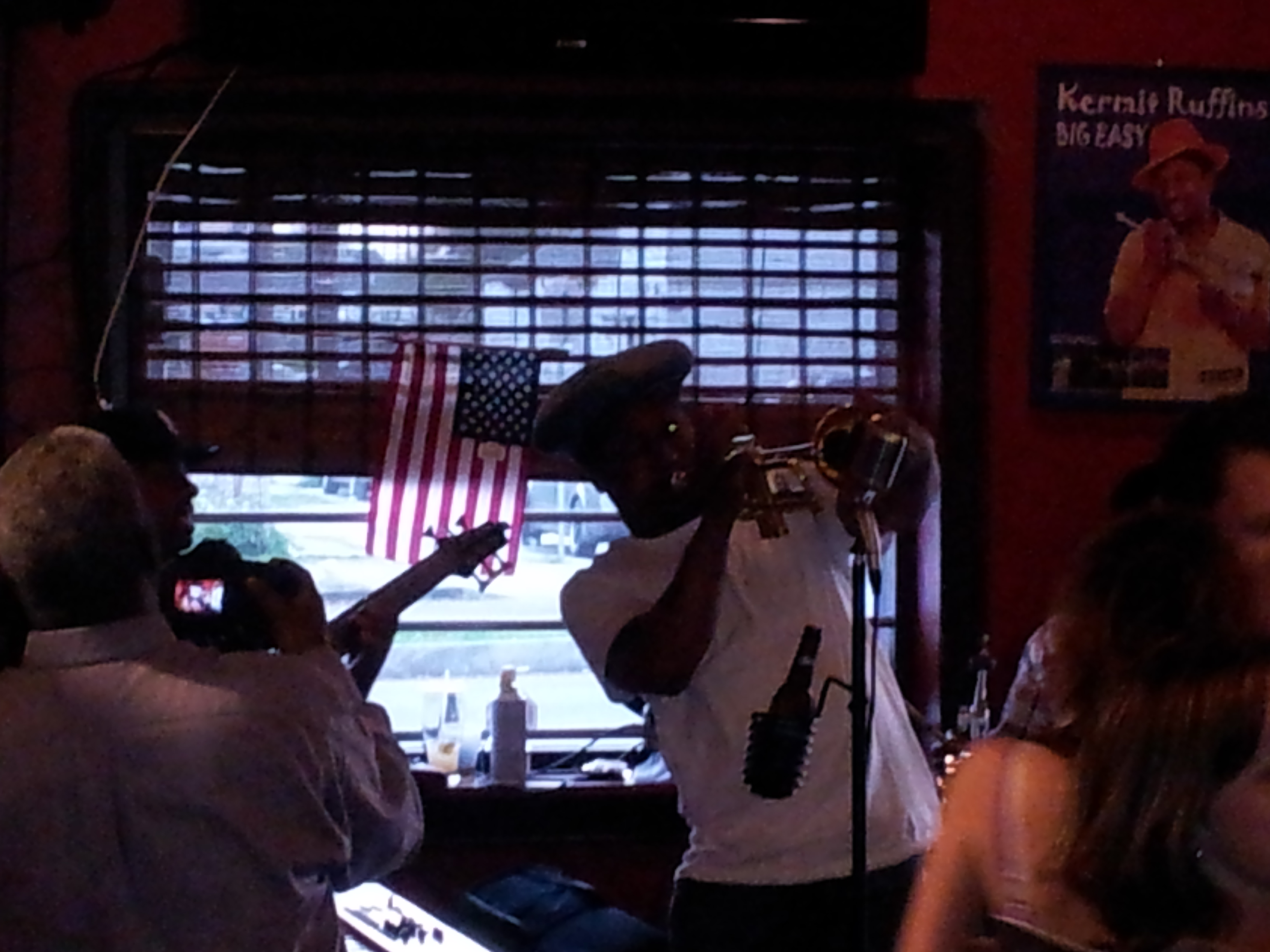 I was excited to return on this Monday in March, but didn’t arrive until right at 6, as now I didn’t fear a crowd and didn’t want to wait around alone. When I walked in the place packed from stage to kitchen. I did several laps of the joint before squeezing up to the bar where the bartender said that it was getting this way for every Sunday and Monday show. I ordered and ate standing up, and, while still excellent, the food seemed to suffer a bit from the rushed production at increased volume. Kermit came on at a quarter to seven and was entertaining as always, although it was hard to hear over the spring break crowd. I struggled to get comfortable, but it was a tight, loud crowd and then, an hour into the show, some old bald jackass literally shoved me out of the way to order a drink. When I said something, he waved me off, for clearly unconcerned at my presence in space he wanted to temporarily inhabit. It took a deep breath and though of getting arrested in New Orleans for choking out an old man though fantasized about shoving him out of the chair he returned to with equal disregard for the space he was inhabiting.