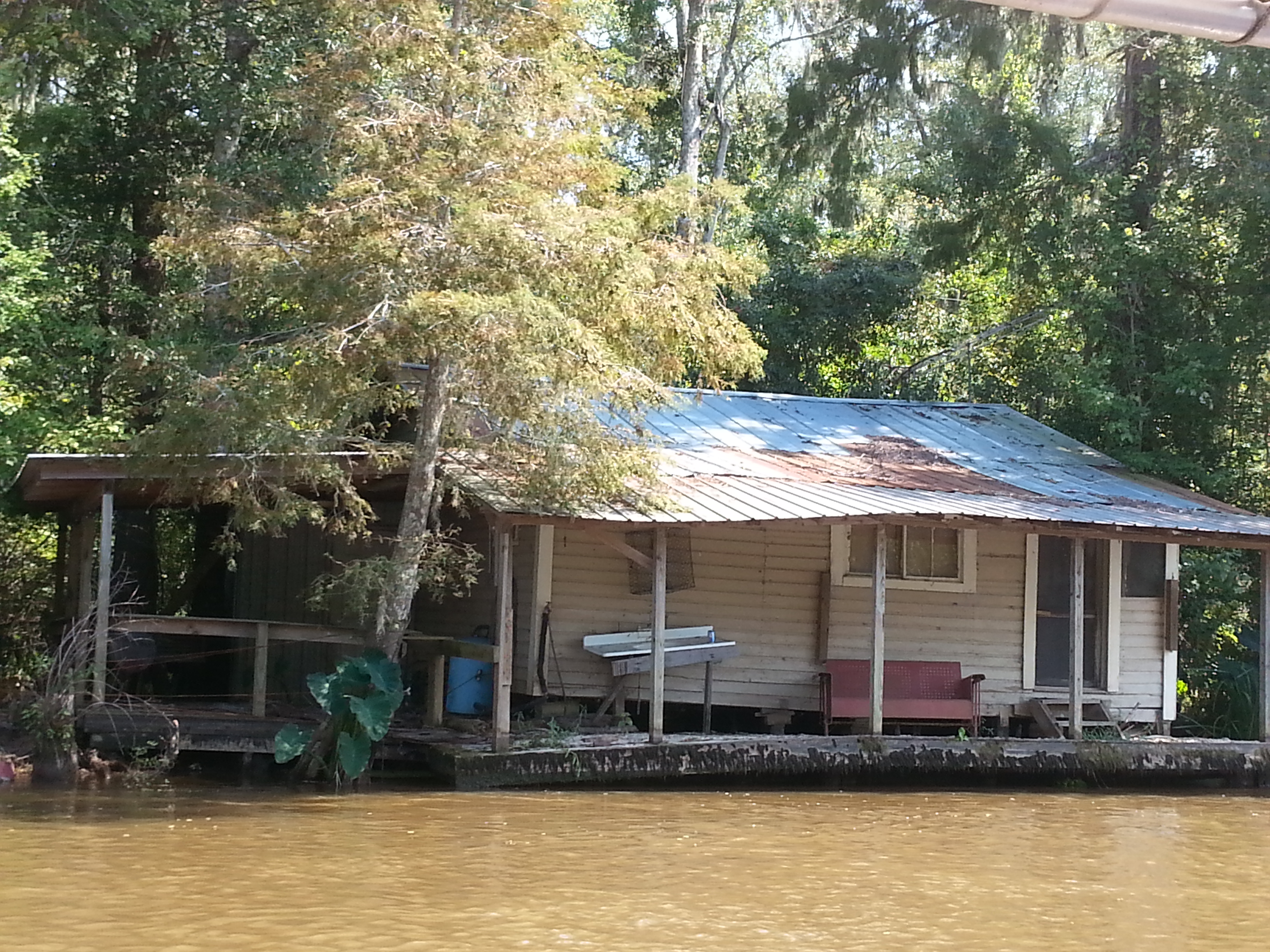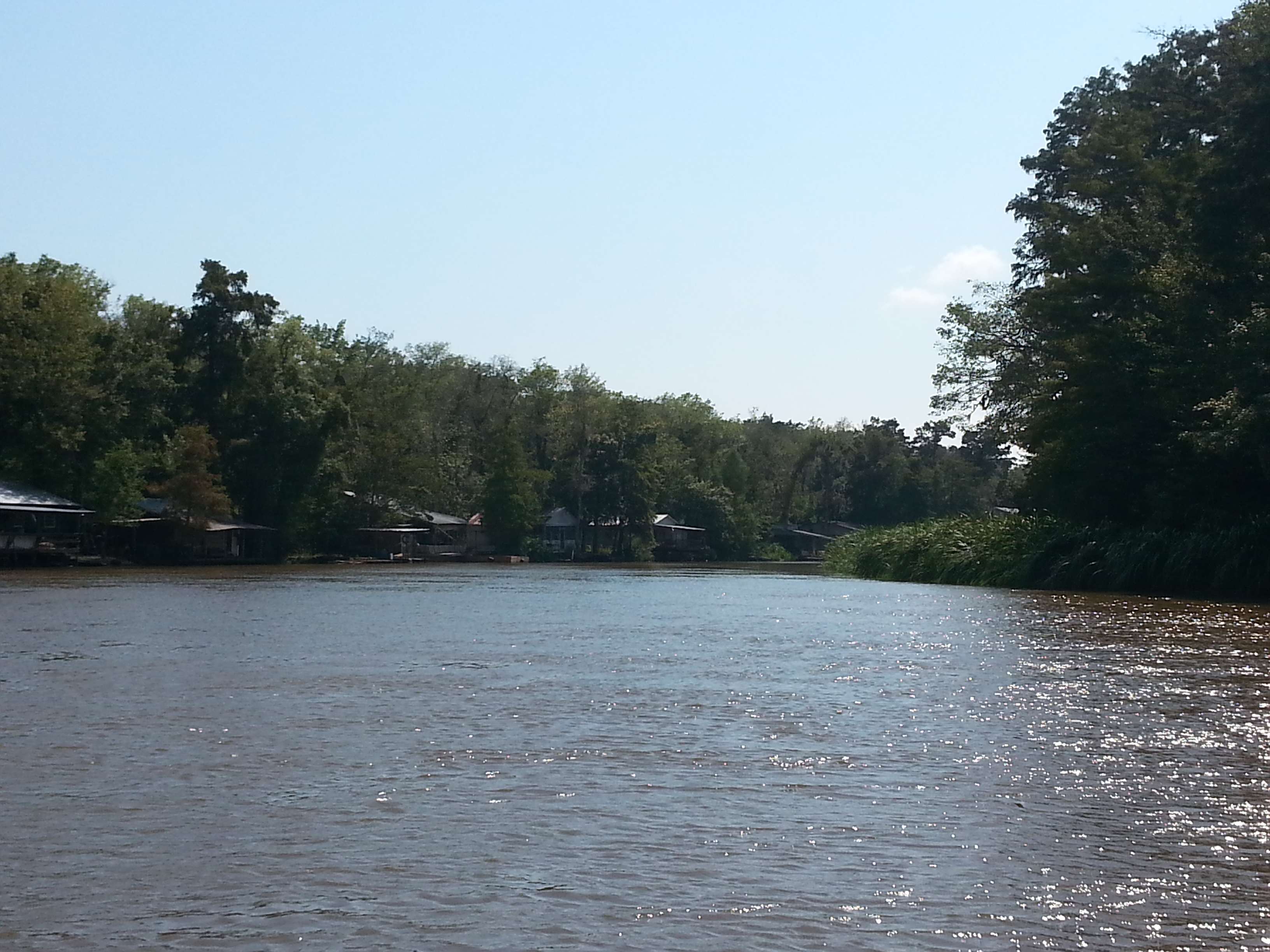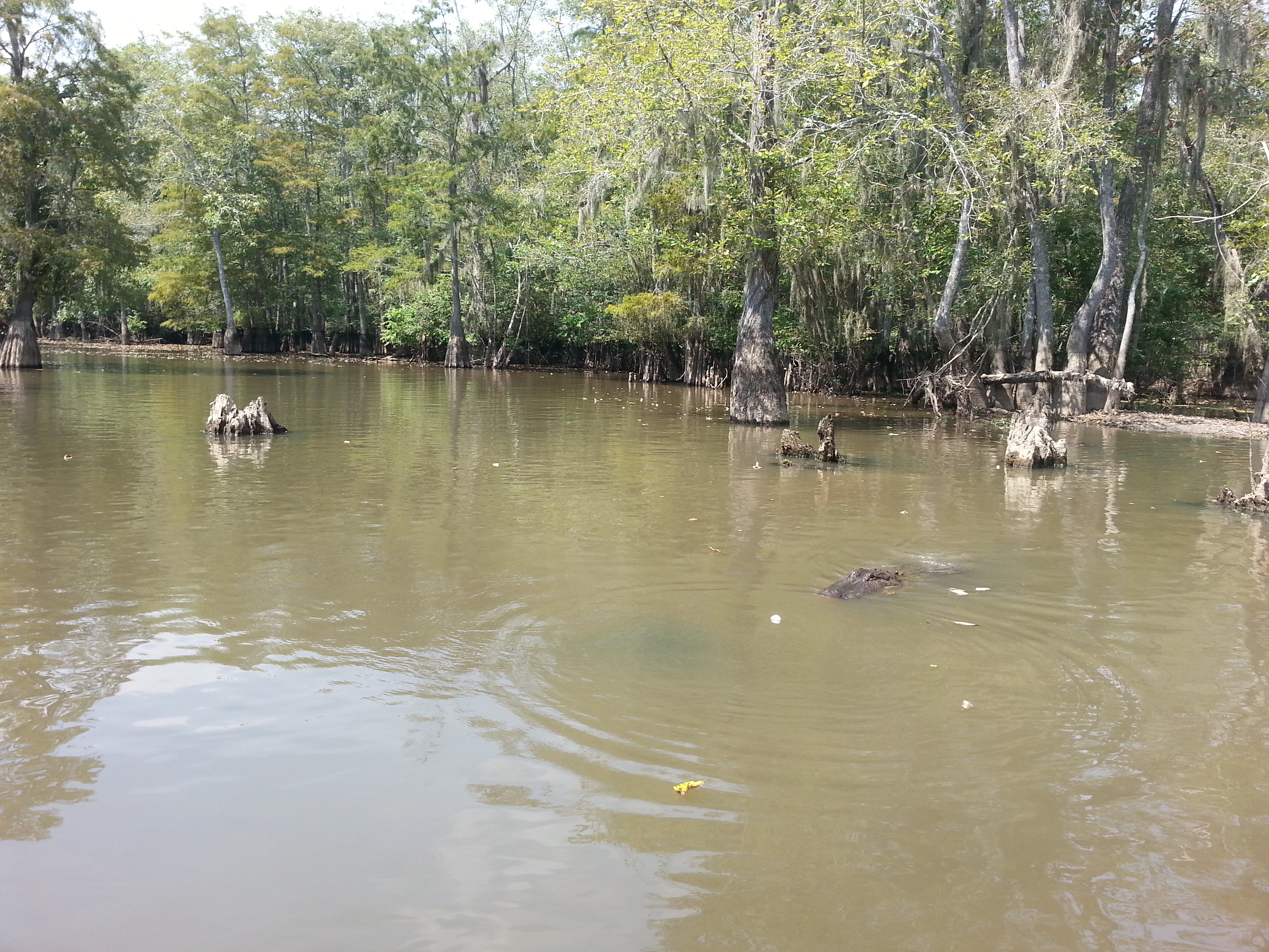 As we trolled the shores unsuccessfully seeking snakes and boars, Brian told a few stories of the deadly water moccasins that infest these waters used by locals for crawfishing, swimming, and skiing. When someone asked about swimming with gators, he shrugged, saying he grew up swimming these waters without incident. As if on cue, we passed a guy swinging out on a rope; however, when everyone cheered him on to let go, he lamely claimed to have a cell phone in his pocket. So, while we failed to spot Sasquatch on the trip (my aunt had requested I go hunting), we did find a timid Tarzan.