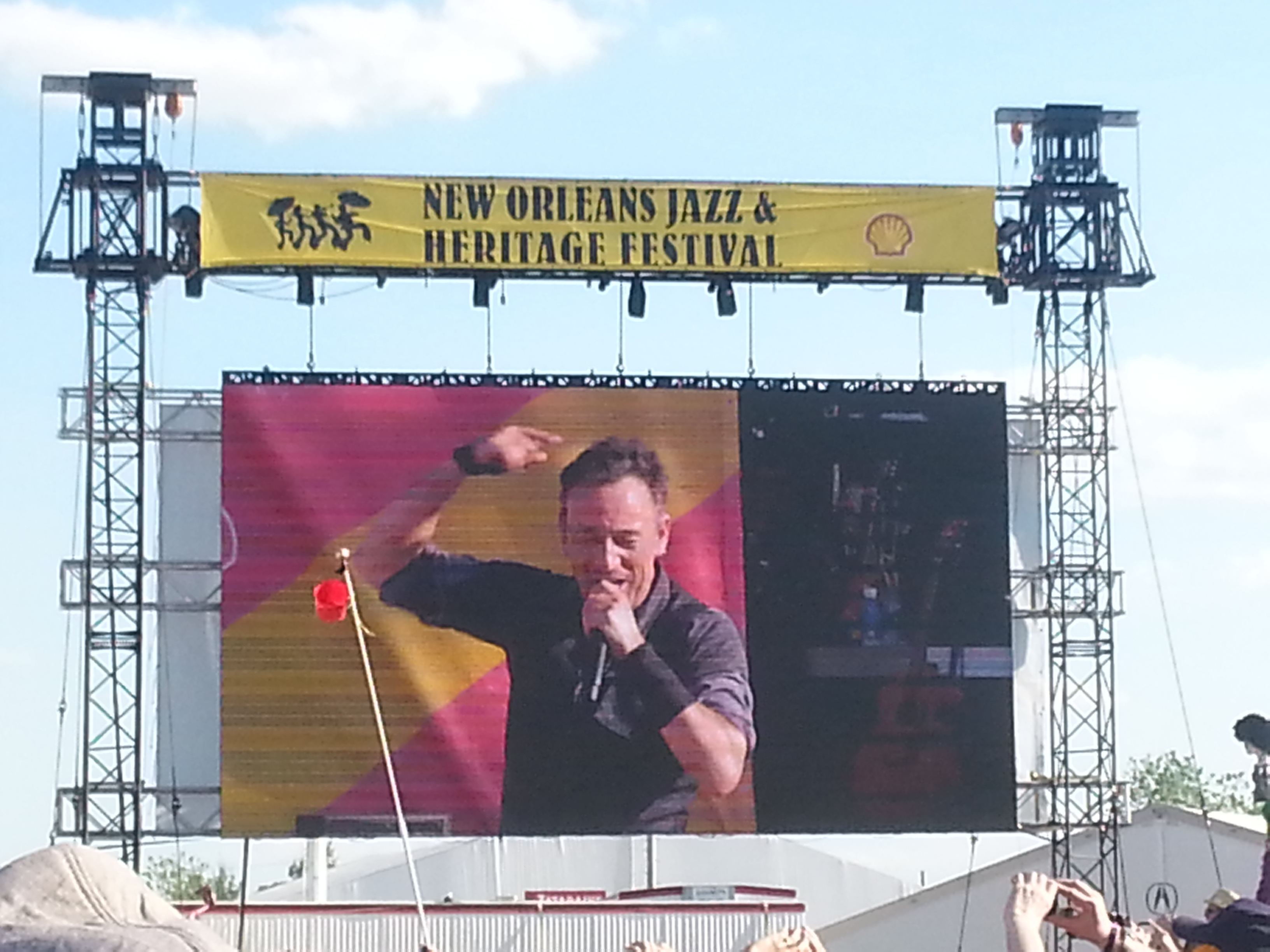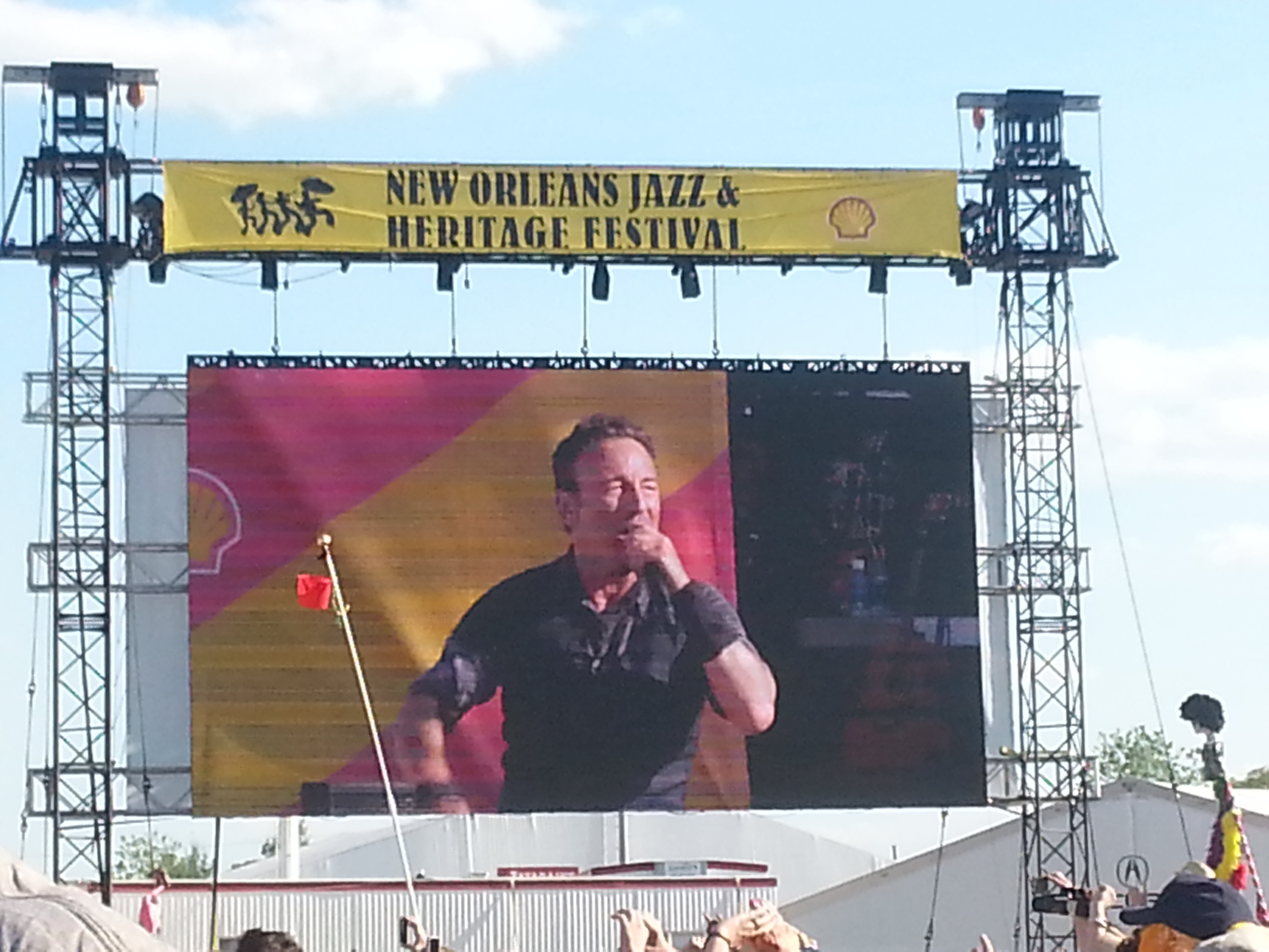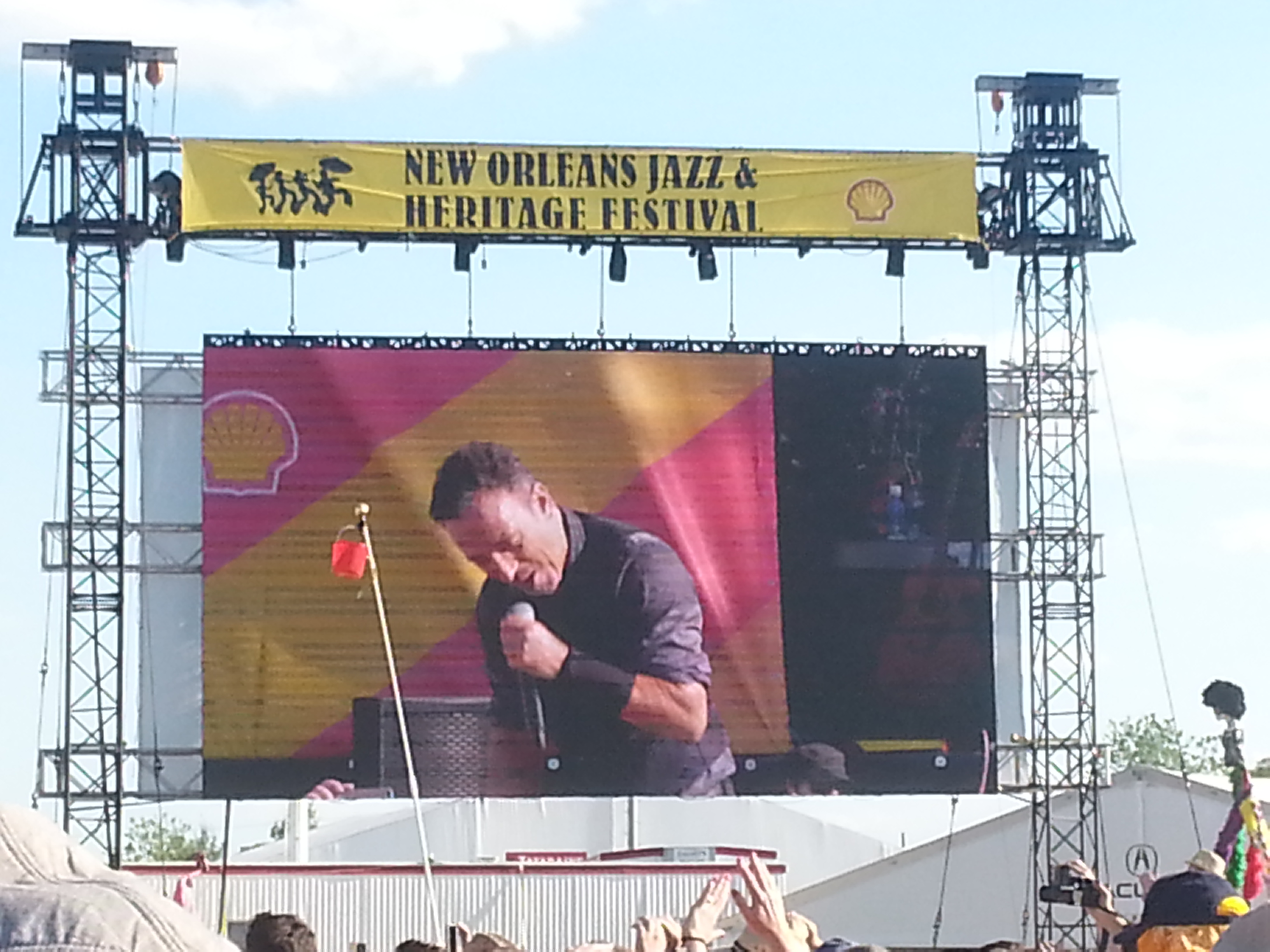 I’ve seen a lot of performances in my life and Bruce is easily one of the top five ever. Few can own a big stage like he can, shrinking a receding crowd of 100,000 fans into an intimate tent revival where he resembles a charismatic country preacher who knows every parishioner by name. I’ve never heard of anyone complaining of him giving less than his best during a show, and he always looks like he’s having the time of his life. At Jazz Fest he was running up and down the walkway stretching through the crowd from stage to sound booth, perching on amps and high-fiving fans. At one point he stopped about 12 yards from where I was buried in the crowd, accepted a beer from a fan, and chugged it as the crowd went wild.