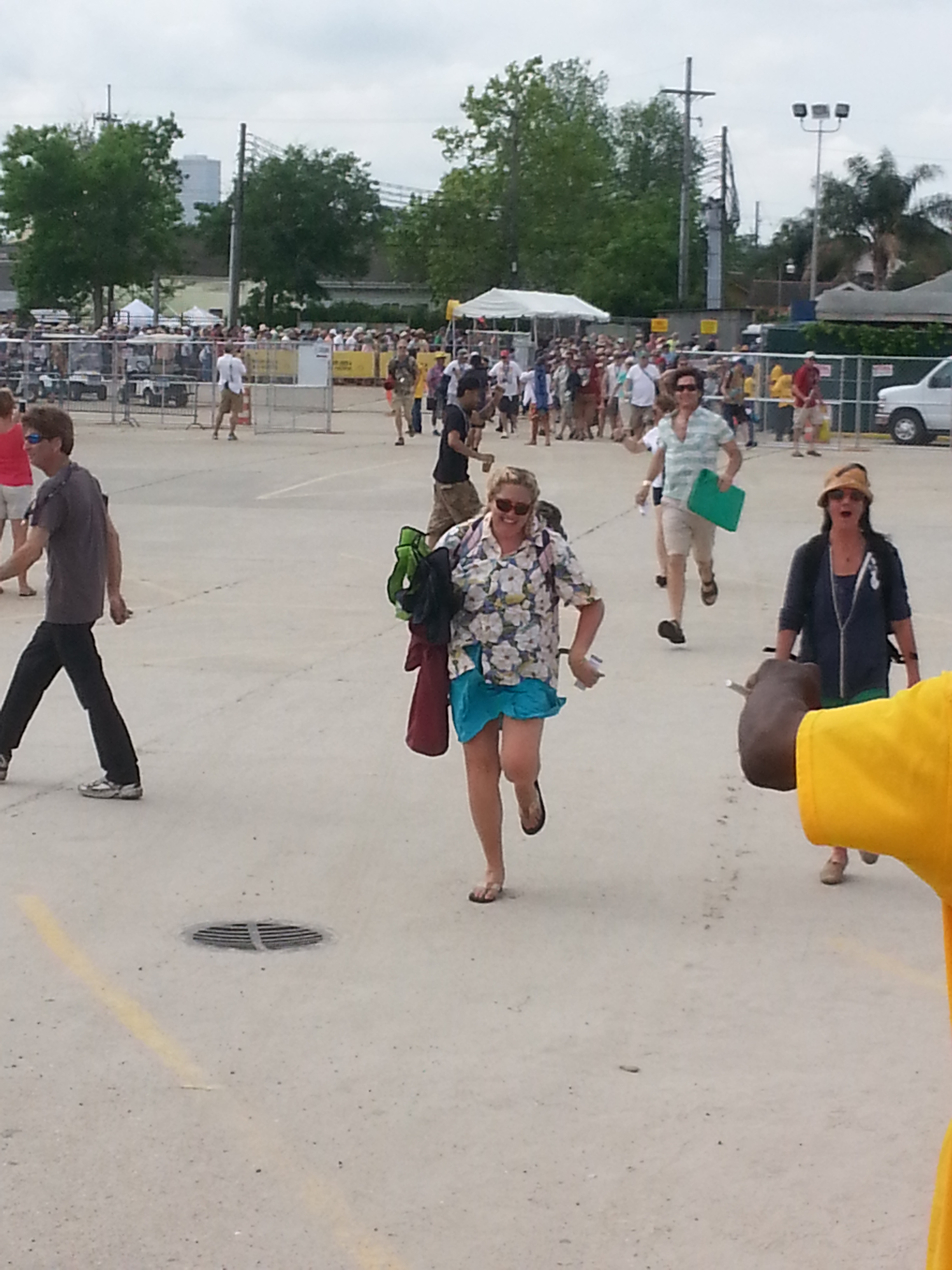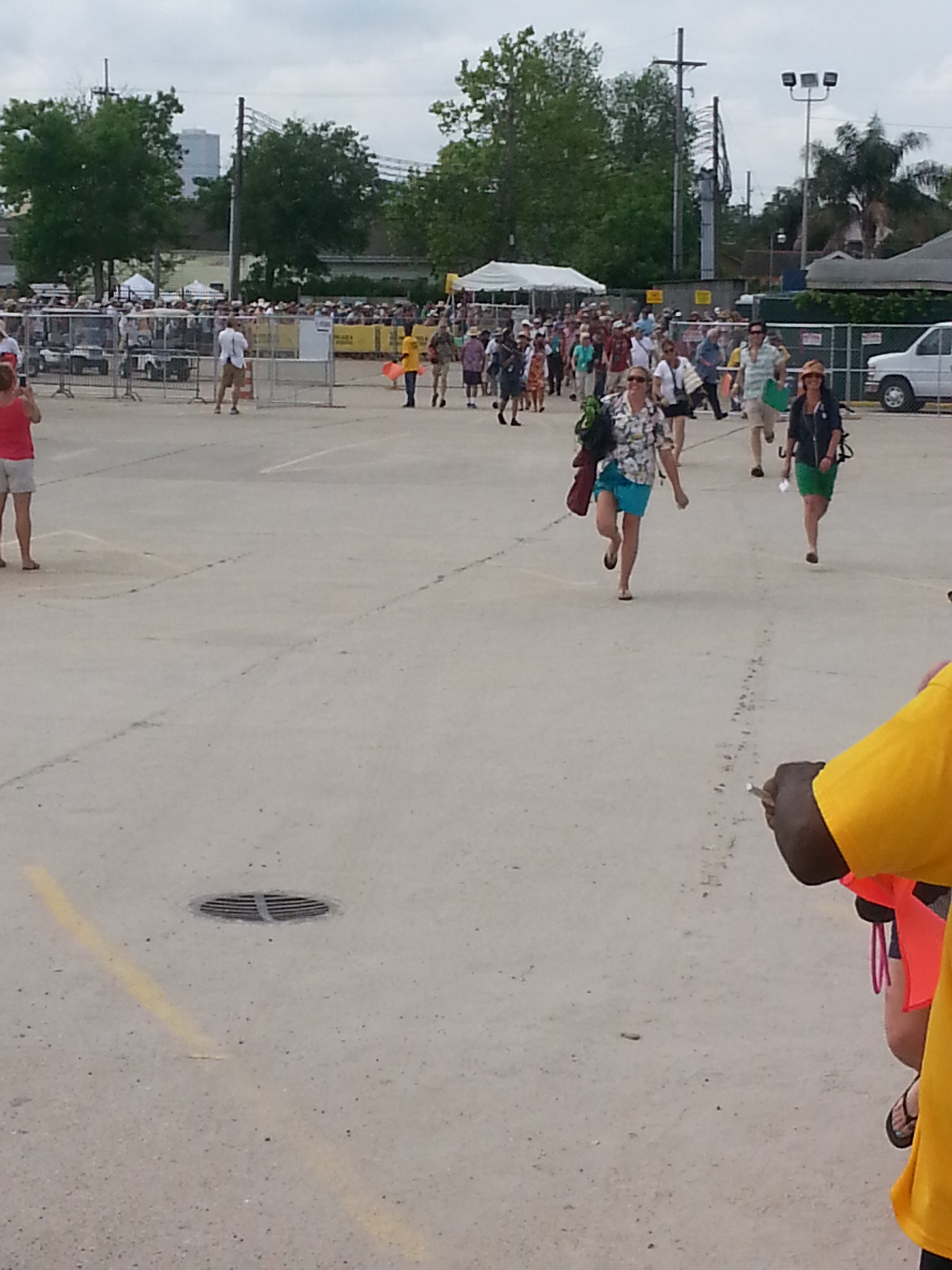 I’ve attended Jazz Fest for many years now, but for 2014 I had a chance to peek behind he scenes and earn free admission in the process. Although the daily price continues to climb–$70 at the gate as opposed to $20 when I first came in 1998—it’s still a bargain when you consider that not only do you get to see headliners like Bruce Springsteen who charge over $100 these days for nosebleed seats, but you get a full day’s worth of music on eleven stages beforehand as opposed to some lame opening act you didn’t even choose. Still, I’ve been pinching pennies the past year so when a friend suggested I volunteer in exchange for free admission I jumped at the chance.