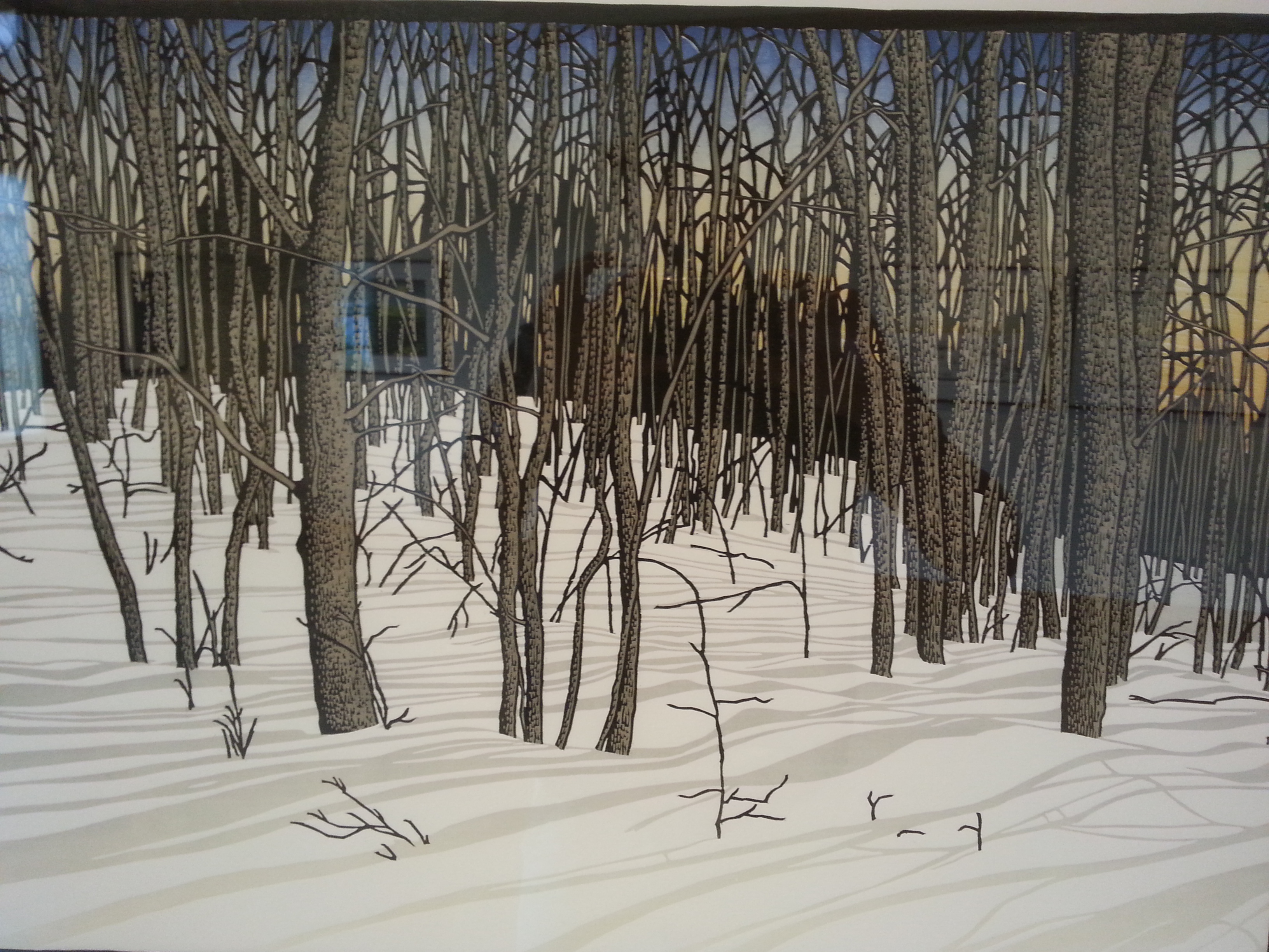 Located in a lovely building along an otherwise industrial stretch of waterfront, the MMAM housed five major galleries which shocked me in both quantity and quality. The first was dedicated to a local artist Nick Wroblewski who carves painting out of wood, rolling ink over each layer as its excavated to provide shading. The results are stunning, though I couldn’t wrap my mind around the technique even after watching an instructional video.