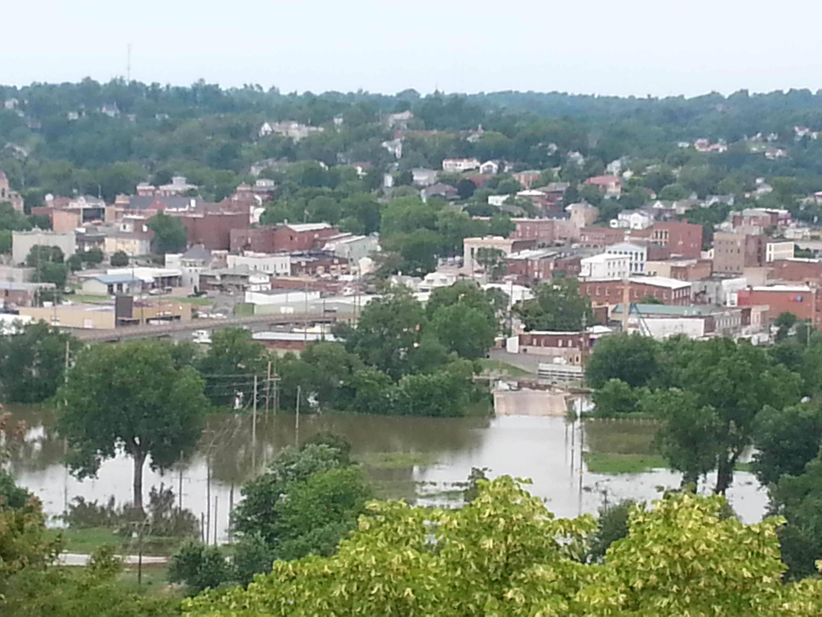 I drove up Lover’s Leap on my way in to view Hannibal from opposite my perch last night. The widening river snaked between the rolling hills below—shrouded in a gray haze—and faded into the horizon. It was readily apparent that the minor flooding of the previous day had worsened overnight.